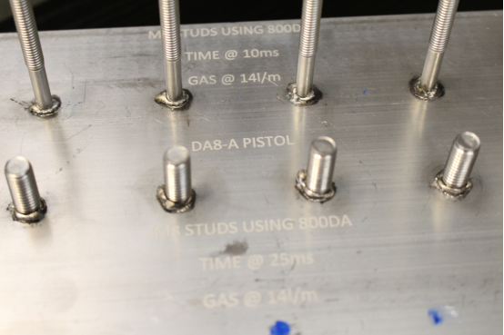 泰勒Taylor 800DA + DA7B手枪,5154螺柱 → 5083阳极氧化铝,氦/氩气环境,焊缝界面处焊缝断裂(仅30%合格)。